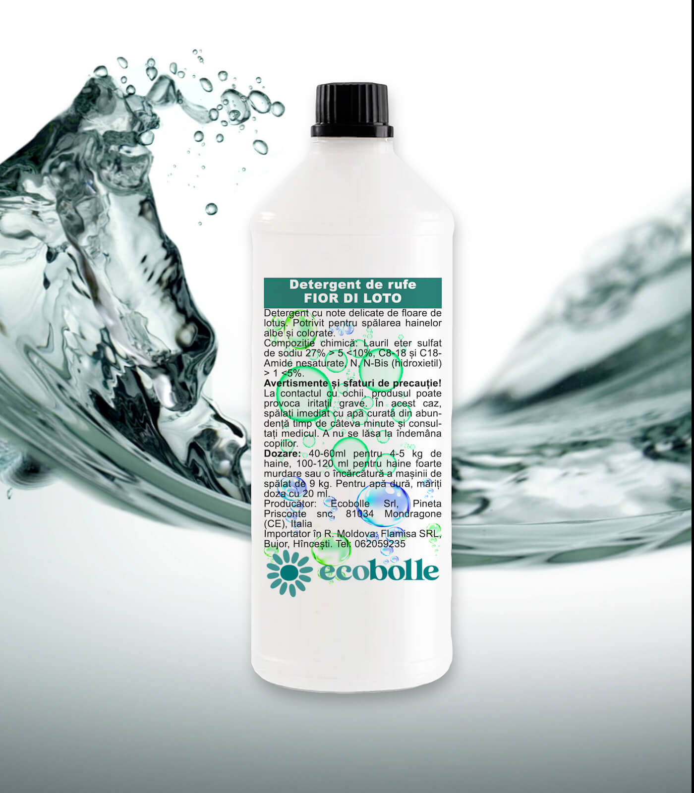 Detergent cu note delicate de floare de lotus. Potrivit pentru spălarea hainelor albe și colorate.